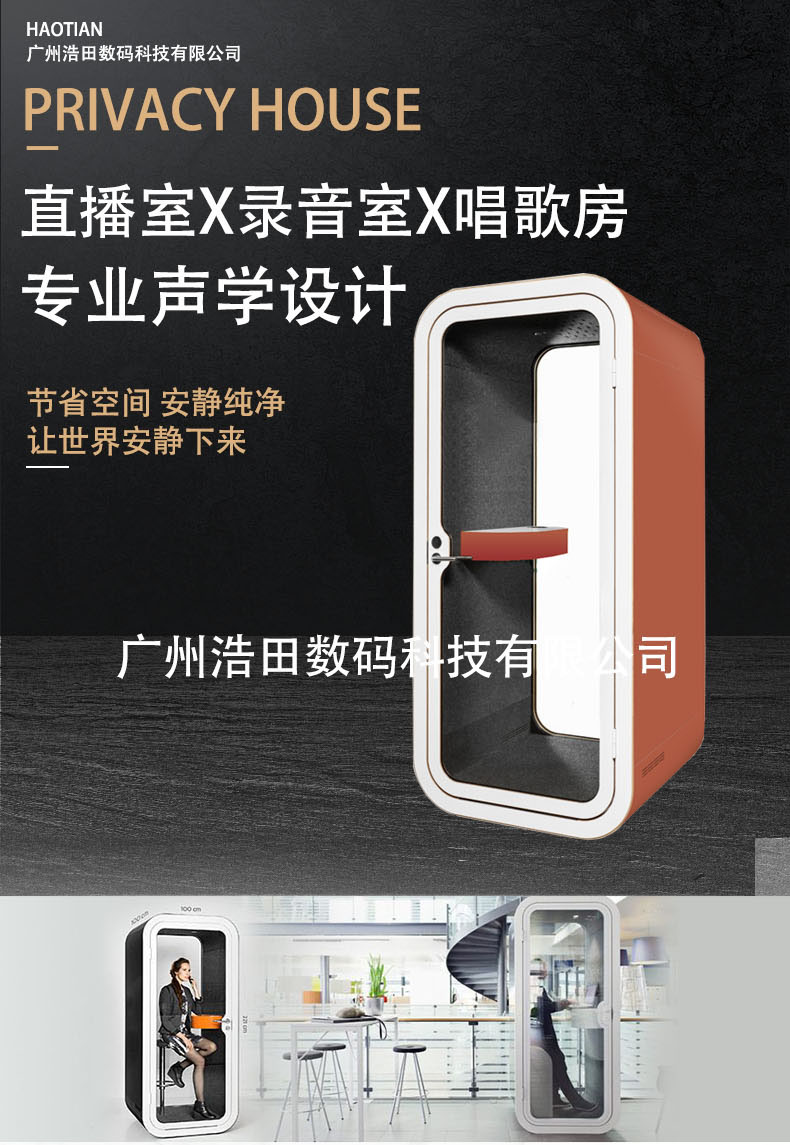 產品特點:隔音亭適用于網絡平臺直播、教育平臺直播