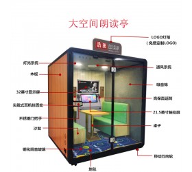 產(chǎn)品特點(diǎn):浩田朗讀亭是集朗讀、練習(xí)、錄制、訓(xùn)練等功能為一體的朗讀設(shè)備,滿足了日常人們朗讀的精神追求。 朗讀亭擁有海量朗讀資源以及豐富的背景音樂可選,也可自帶書本文稿進(jìn)行自由朗讀。可以設(shè)置在單位、圖書館、文化館、博物館、機(jī)場、高校、中小學(xué)、公園景點(diǎn)等地方。這款朗讀亭的尺寸是200*172*220cm,空間足夠?qū)挸ǎ梢匀菁{四人。