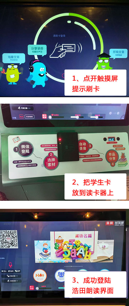 朗讀亭在中小學校園一般是不能攜帶手機上學的,學校想買一臺朗讀亭,還要考慮到怎么登陸朗讀界面的問題。廣州浩田數(shù)碼科技有限公司研發(fā)的——校園無手機朗讀方案。