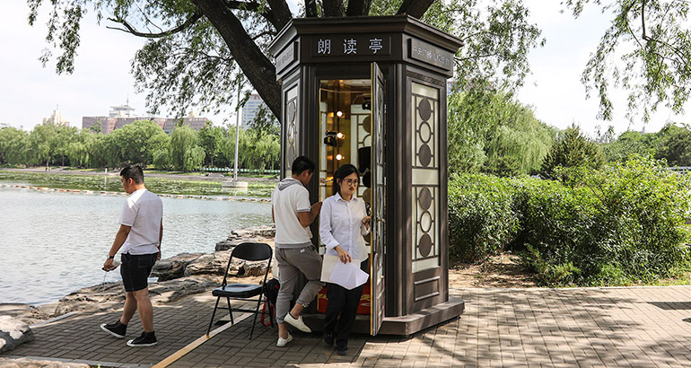 據(jù)了解,“朗讀亭”預計在玉淵潭公園進駐一周時間,開放時間為每天上午9:30至下午6:00。