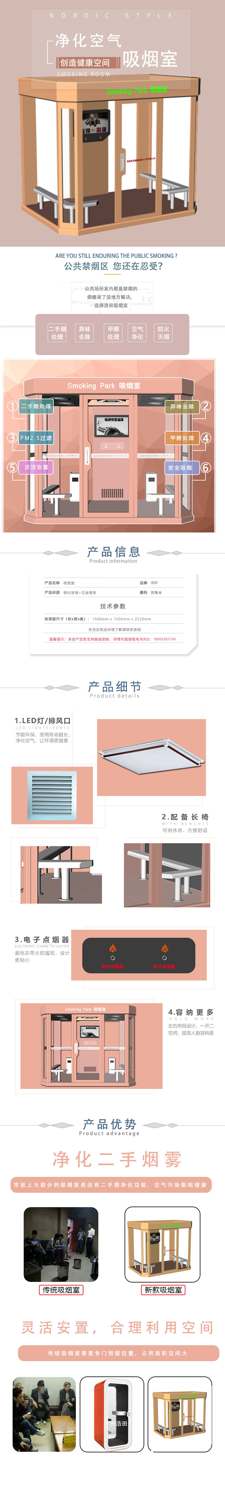二手煙,亦稱被動吸煙、是危害廣泛、嚴(yán)重的室內(nèi)空氣污染,是全球重大死亡原因之一。北京、上海、深圳等至少18個城市出臺了符合或接近世界衛(wèi)生組織《煙草控制框架公約》要求的防止二手煙危害的控?zé)煼ㄒ?guī)。但想絕對禁煙是很難在短時(shí)間內(nèi)實(shí)現(xiàn)的。吸煙室應(yīng)用正是為緩解二手煙污染與煙民之間矛盾的有效措施。浩田品牌吸煙室,能有效吸附香煙點(diǎn)燃產(chǎn)生的煙霧,凈化污染空氣。還人們一片潔凈,廣泛用于工廠,賓館、車站、機(jī)場、醫(yī)院、商場等公共場所。吸煙亭的應(yīng)用同時(shí)能有效杜絕因吸煙產(chǎn)生的火災(zāi)隱患。